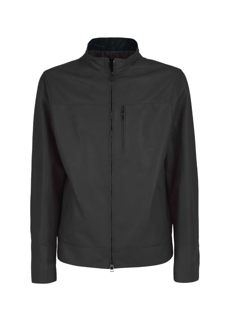 There are two side pockets with a chest pocket with a visible zip and an interior pocket. However, we make the jacket breathable and slim fit. A novel patent that changes the way apparel is made. This piece of outerwear is inspired by the Geox clothing patent, which has brought ease of wear and ventilation to the realm of outerwear.