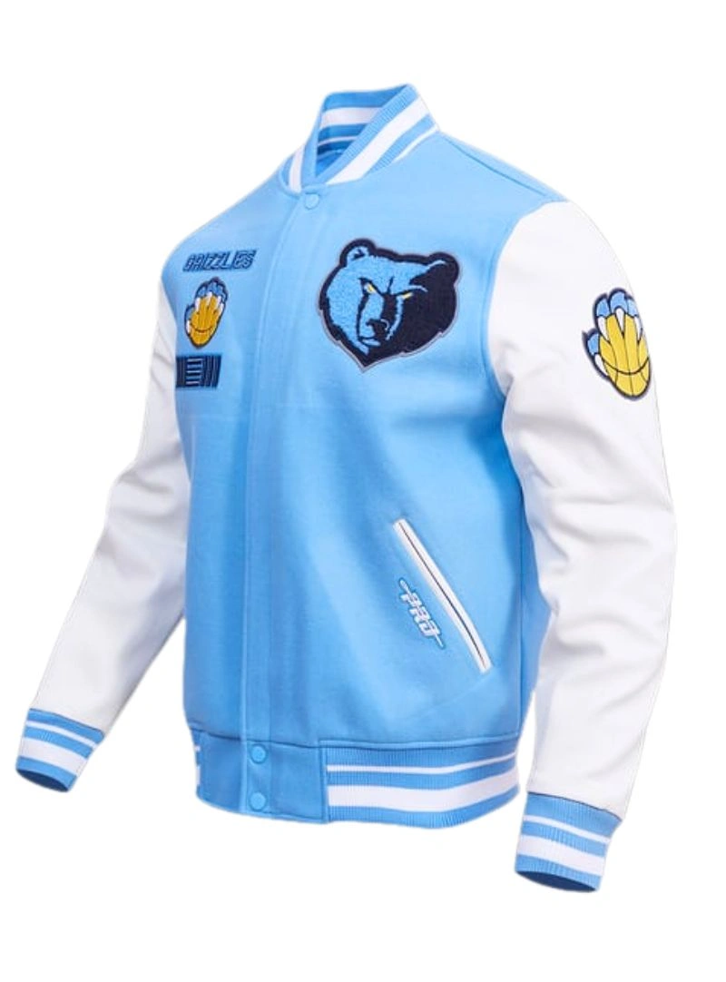 Your fierce loyalty and passion for the Memphis Grizzlies are symbolized by a jacket that is more than just outerwear. You can’t help but be recognized as a die-hard Grizzlies fan wherever you go—from the FedExForum for an exciting game to just going about your day. Men’s Grizzlies Memphis wool varsity jacket embodies the team’s spirit with its detailed design, team colors, and famous Memphis Grizzlies emblem. You may show off your team spirit and add to the exciting Grizzlies vibe with one of our jackets.