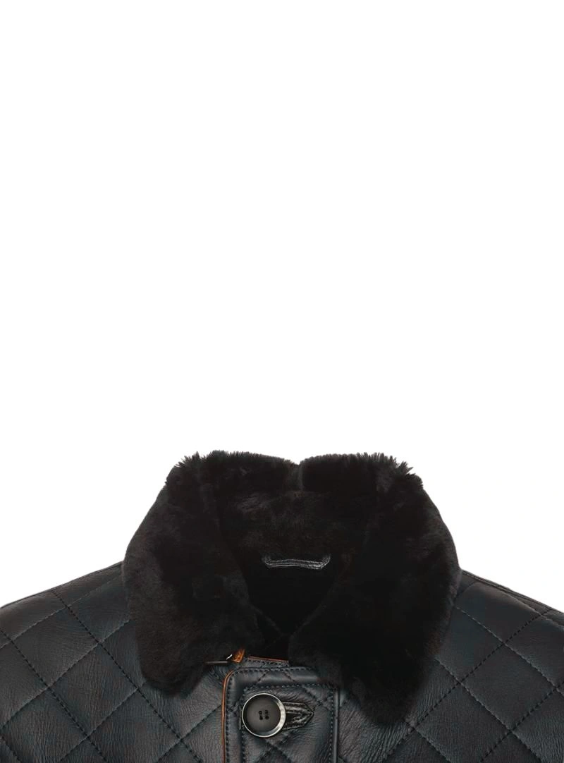 This quilted leather coat is great for people who want to wear something new and unique. However, black real leather makes up the outside, and polyester makes up the inside. The front boasts diamond-stitch quilting and a nice fit. In addition, the waist has brown-lined pockets. This  black shearling jacket is a must-have that makes you look more stylish. The snap tab button and zip closing keep you cozy but keep cold breezes out, whether you’re going to the big game or a special night out.