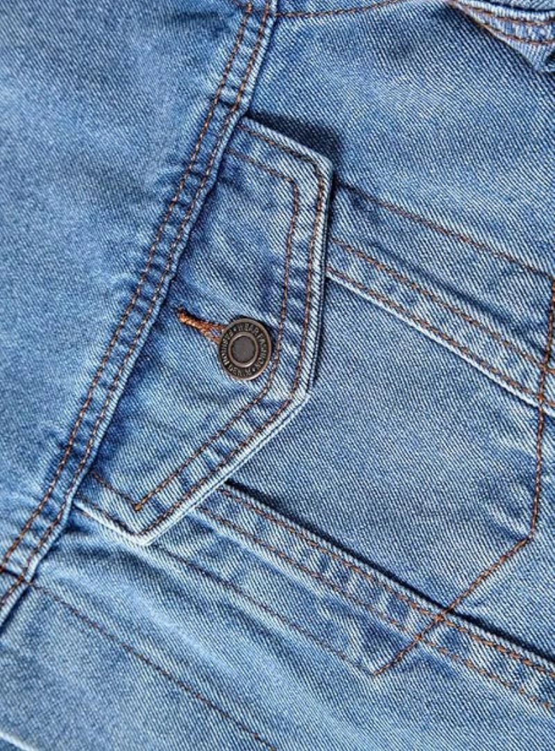 Great craftsmanship! The denim is of high quality. The ice blue wash is perfect and gives off a clean, old-school vibe. This jacket feels well-built. The buttons are durable, and the stitching is robust.